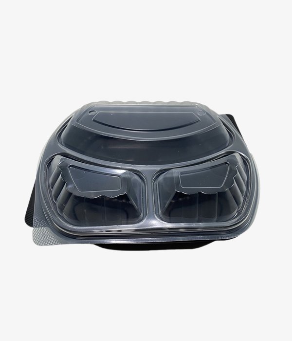 Barquette noir 3 compartiments 25x22x4cm avec couvercle